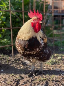 Heïdi, comme la dinde Paloma, vient d’un élevage industriel en batterie, où la vie est rythmée par la promiscuité, le stress et des conditions sanitaires difficiles. Contrairement à Paloma, sa croissance a été plus lente et harmonieuse, préservant ainsi sa musculature et sa mobilité, malgré les nombreuses infections, parasitoses et troubles respiratoires dont elle a souffert.